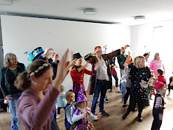 Immer wieder schallten fröhliche Rufe und lautes Lachen durch das Torhaus. Bei Polonäsen, Tanzrunden und Bewegungsspielen gab es für die jungen Gäste kein Halten mehr. Auch Eltern und Großeltern ließen sich von der fröhlichen Stimmung anstecken, klatschten begeistert mit und genossen den närrischen Nachmittag in vollen Zügen.
